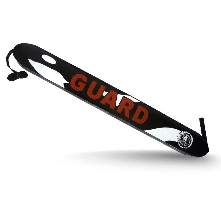 The lifeguard tube measures 50″ long by 6″ wide by 4″ thick and is made of multiple layers of high viscosity vinyl, minimizing punctures and tears. The rounded edges also increase durability, and tapered ends reduce drag, making it easier to pull through the water. The 400 denier adjustable shoulder strap is connected to the rescue tube by 1″ nylon strapping that extends completely through the length of the tube for added strength. This lifeguard rescue tube features “GUARD” lettering on the front.