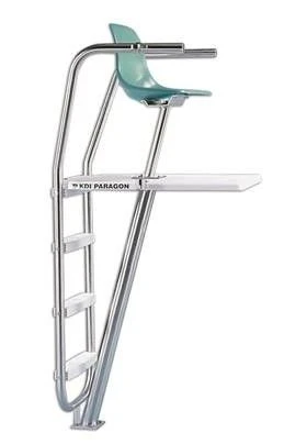 With a seat height of 6’0”, the Club chair is designed with the same quality materials as the Paraflyte chair but has only the one anchor. The Club Chair does not require the additional space for the ladder and the ladder’s separate anchors and is a great chair where less deck space is available. The Fiberglass Coated Plywood Platform height is 4’6” High. All Rails are .065” wall, 1.90” diameter stainless steel. The Club Chair comes with the anchor, Umbrella holder and Ring Guide.